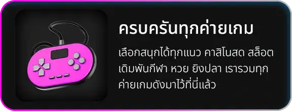 ตอบ : - มีเกมสล็อตออนไลน์มากกว่า 1,000 เกม - คาสิโนสดถ่ายทอดตรงจากบ่อน - กีฬาและอีสปอร์ตให้เดิมพัน - เกมยิงปลาและเกมไพ่ต่างๆ - หวยออนไลน์ครบวงจร